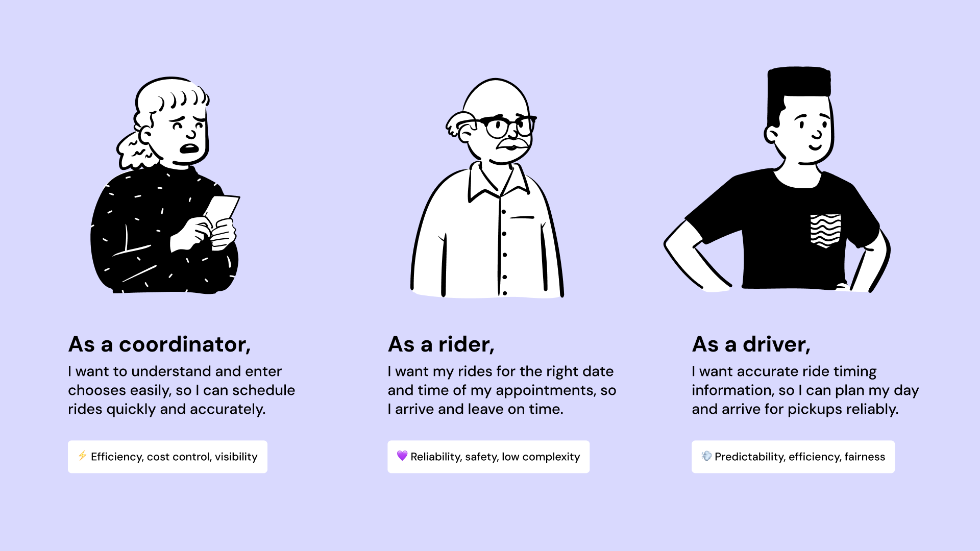 For coordinators managing rides across tight schedules, a suboptimal experience introduces unnecessary cognitive load and room for error. In a workflow where precision directly impacts someone's care, that's a problem worth solving carefully.