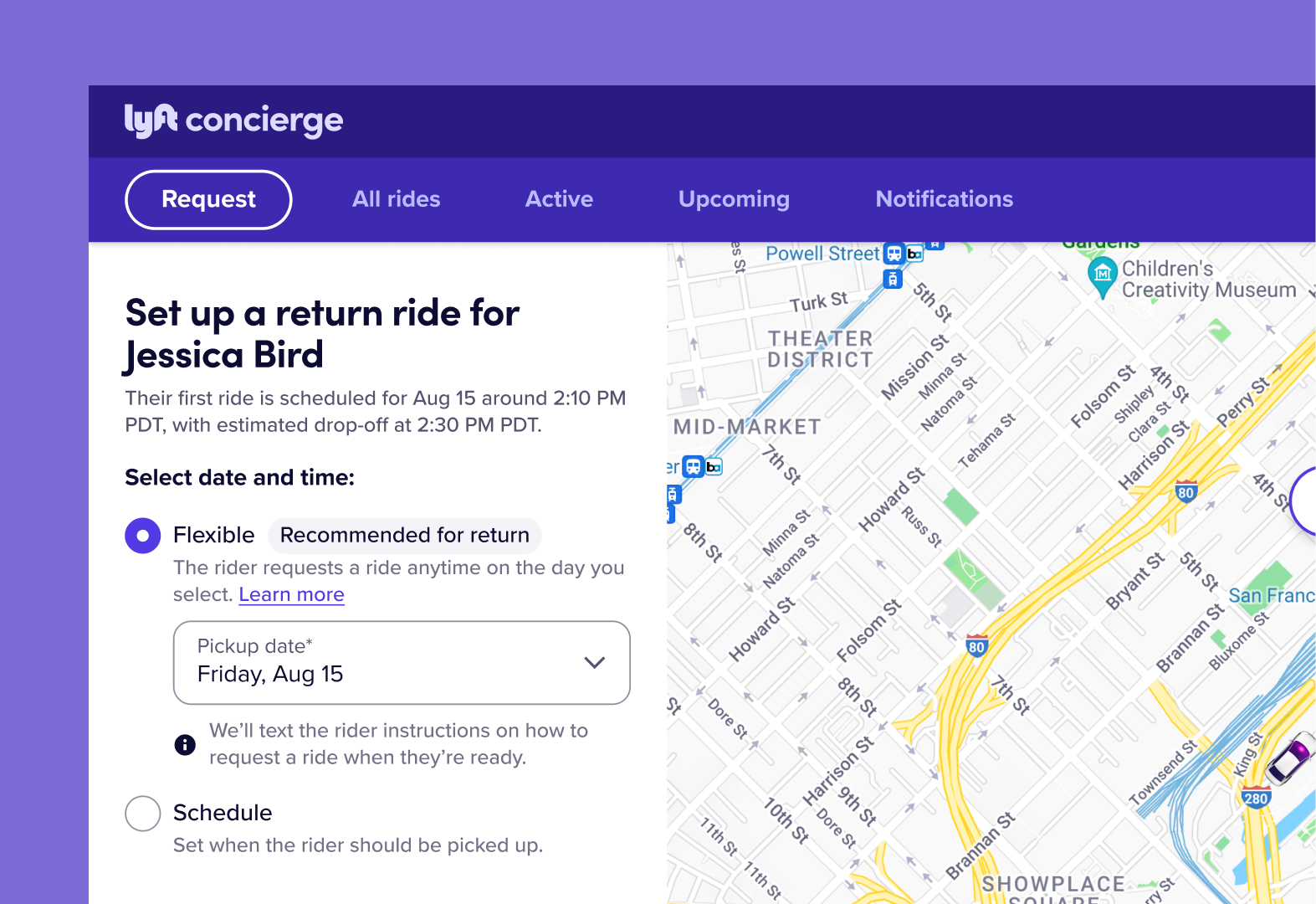 Lyft Concierge riders are often older adults, patients, or individuals without access to smartphones, which means they rely on coordinators to book rides on their behalf for appointments. Unlike typical Lyft rides, these trips are often scheduled in advance, tied to strict appointment windows, and may involve riders with limited mobility, health concerns, or heightened anxiety around travel.